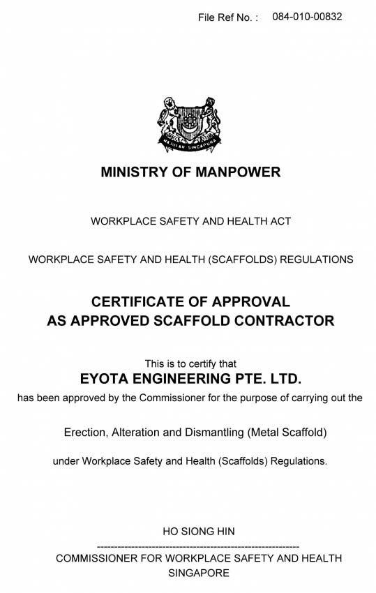 Awards & Certificates Scaffold Approval CertificateASPRICertificate of LicenceBizsafeCertificate of RegistrationOHSASIAS