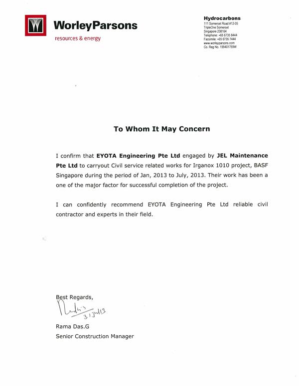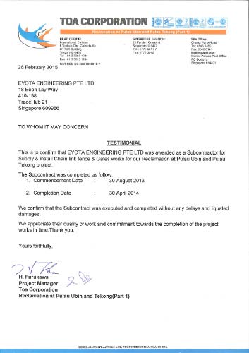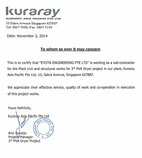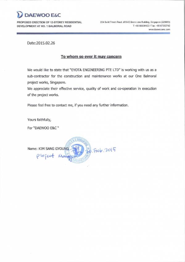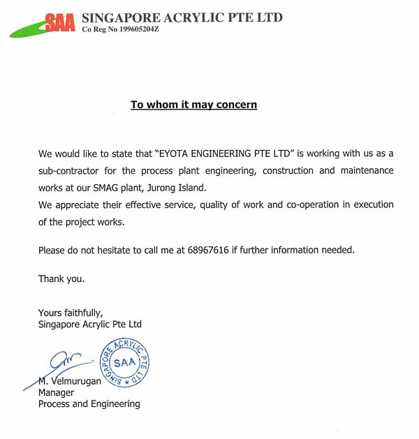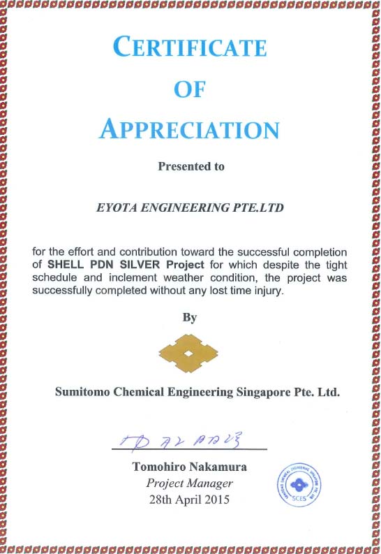 Testimonials Sumitomo CertificateWorley ParsonsKuraraySingapore Acrylic Pte LtdDAEWOO E&CTOA Certificate